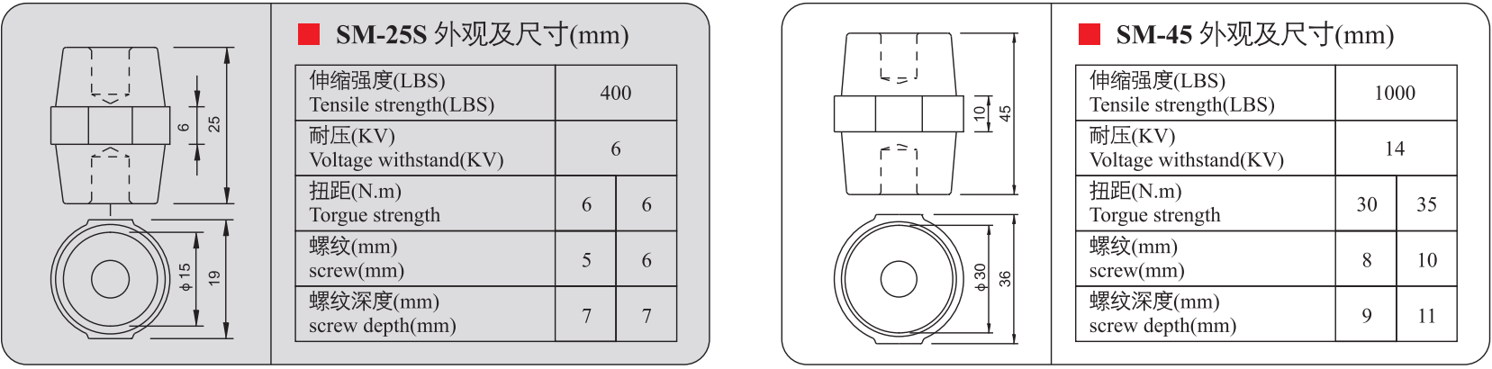 Sản phẩm gồm các mã: SM-20, SM-25S, SM-25, SM-30, SM-35, SM-40, SM-45, SM-51, SM-60, SM-76 – được phân loại theo kích thước và khả năng chịu điện áp khác nhau, phù hợp cho nhiều loại tủ điện công nghiệp.
