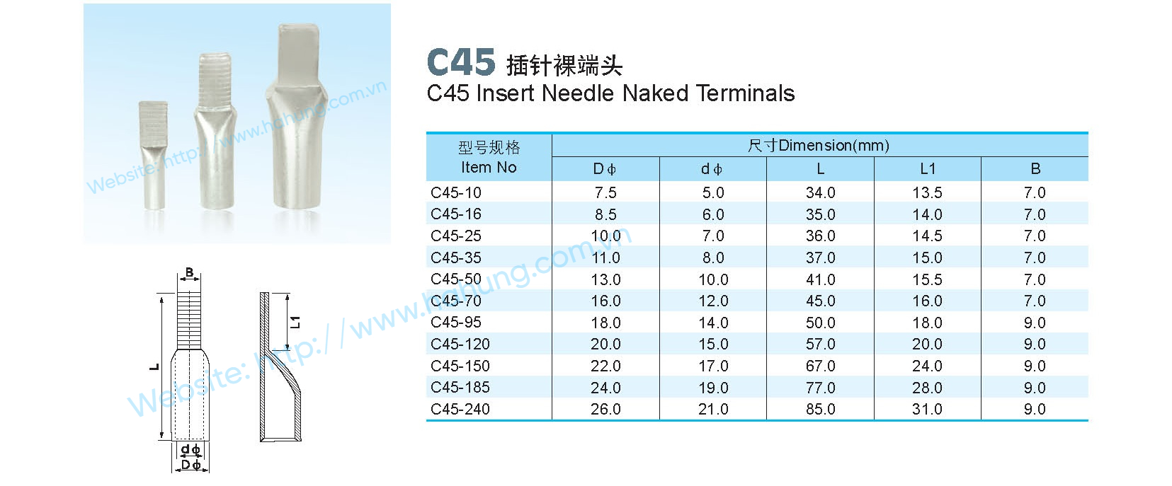 Mã sản phẩm: C45-10; C45-16; C45-25; C45-35; C45-50; C45-70; C45-95; C45-120; C45-150; C45-185; C45-240