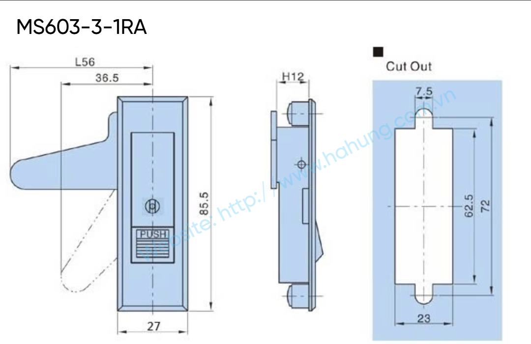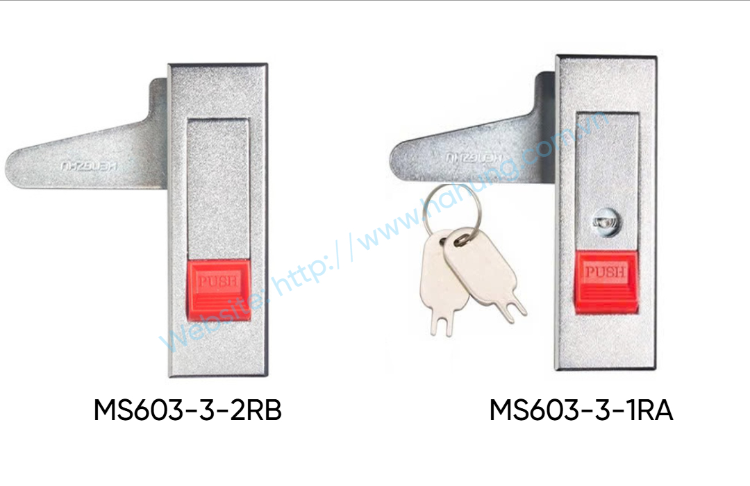 Khóa MS603-3 là khóa tủ điện dạng tay gạt, tích hợp nút nhấn PUSH giúp đóng/mở nhanh và tiện lợi. Thân khóa làm bằng Hợp kim kẽm mạ chrome sáng bóng , cơ cấu cam phía sau giữ cửa tủ đóng chặt. Sản phẩm có phiên bản không chìa và có chìa khóa, phù hợp lắp cho tủ điện, tủ điều khiển và vỏ thiết bị công nghiệp.