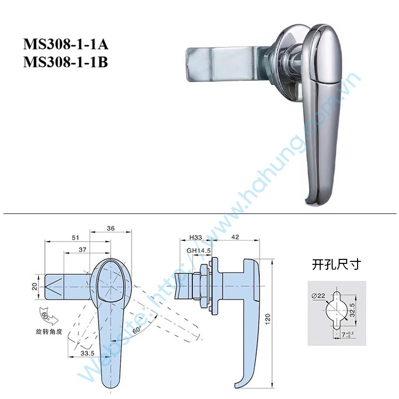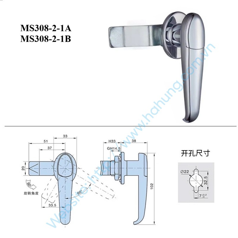 Khóa MS308 là khóa tay nắm camlock dùng cho tủ điện và tủ kim loại.