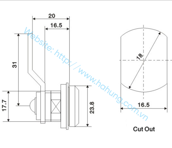 CAMLOCK MS1403-20 là khóa dạng cam dùng cho tủ điện và tủ kim loại, được làm từ hợp kim kẽm đúc bền chắc. Cơ chế xoay giúp khóa giữ cánh tủ đóng chặt và an toàn. Thiết kế nhỏ gọn, dễ lắp đặt, phù hợp cho nhiều ứng dụng công nghiệp.