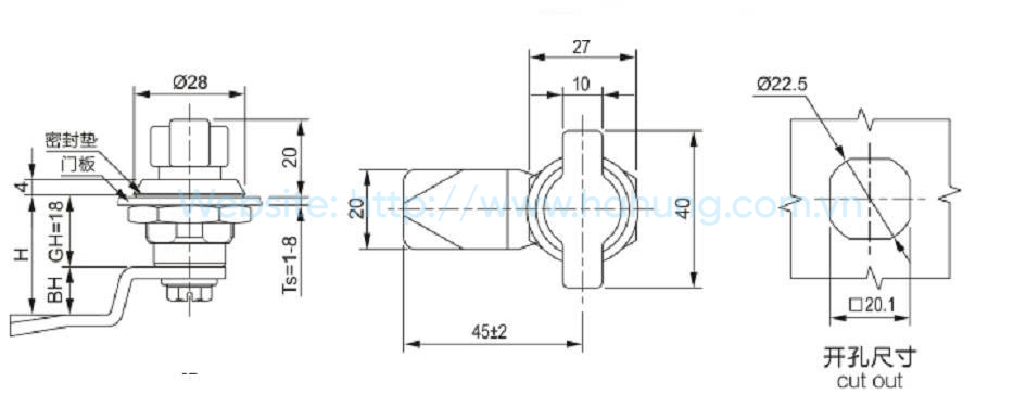 Material:zinc die-casting body,PA-6 knob,M.S. Zinc plating nut and;