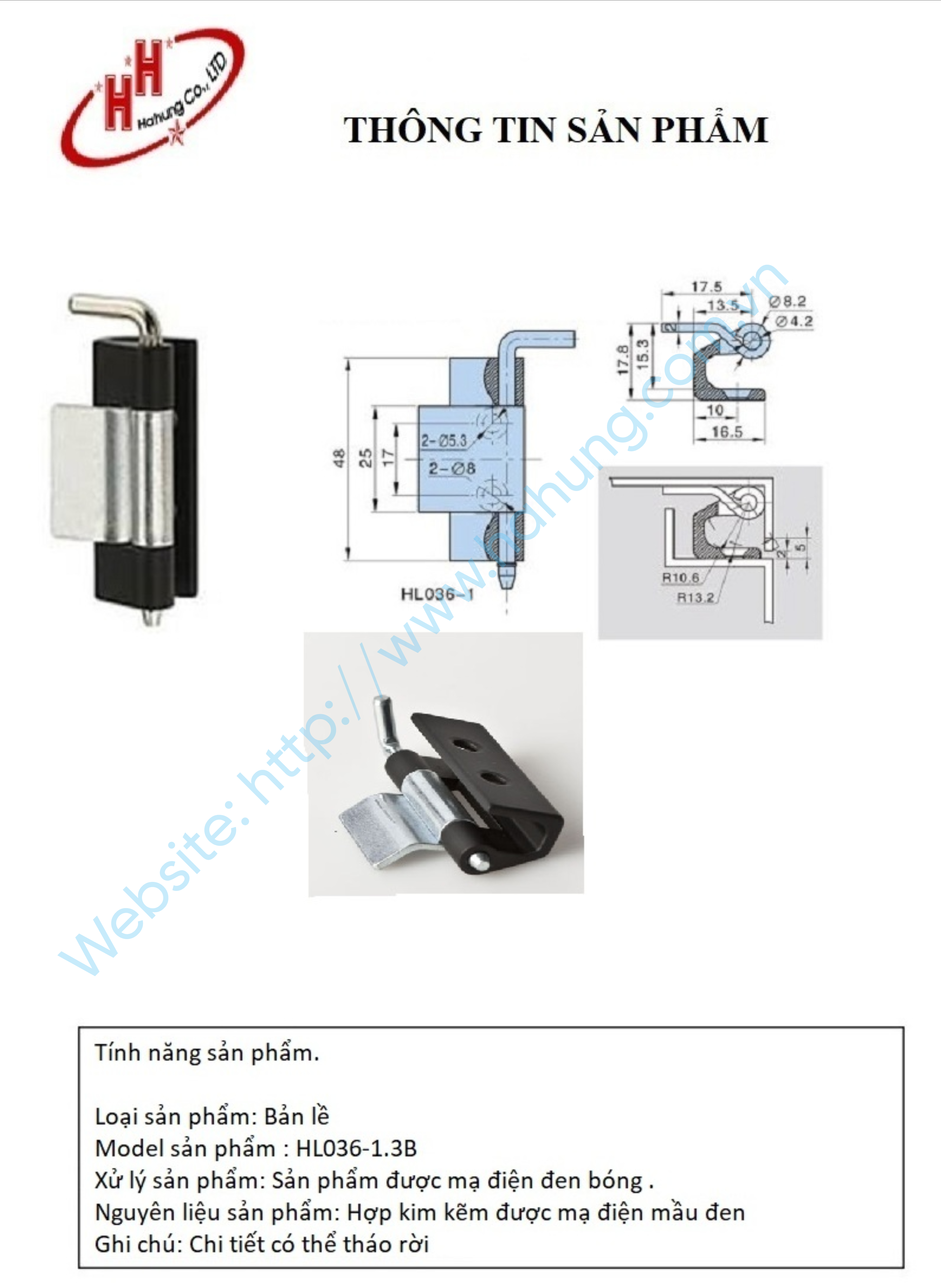 Bản lề HL036 là loại bản lề phổ biến dùng trong các tủ điện phân phối, tủ điều khiển, tủ máy, tủ công nghiệp và tủ ngoài trời.