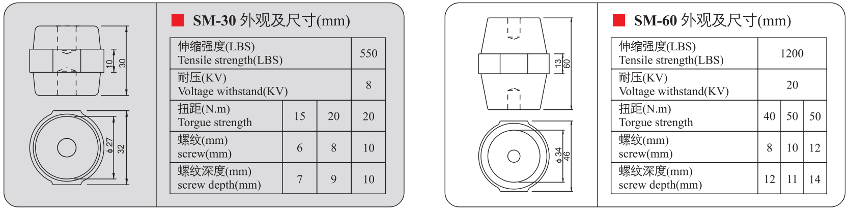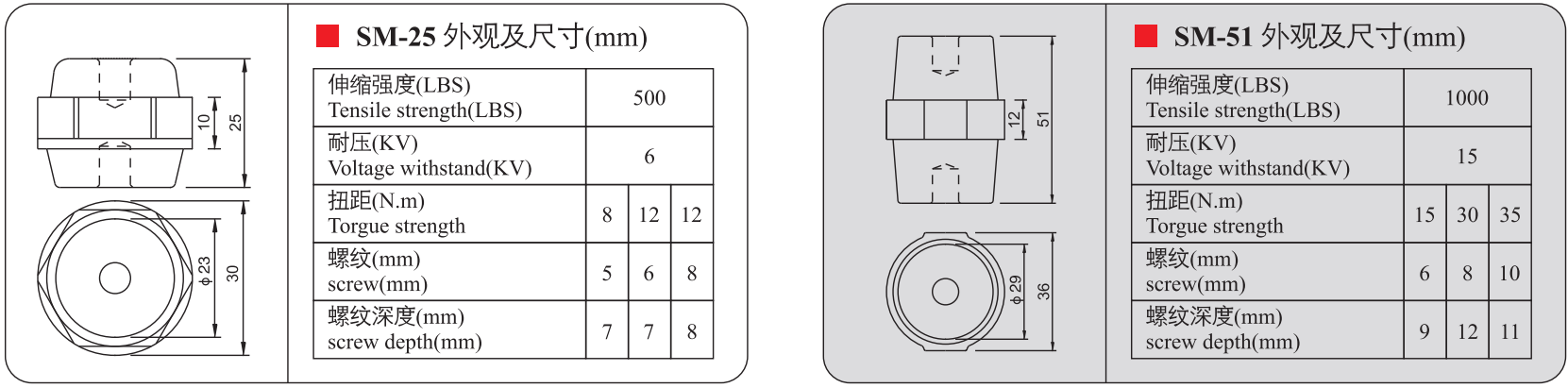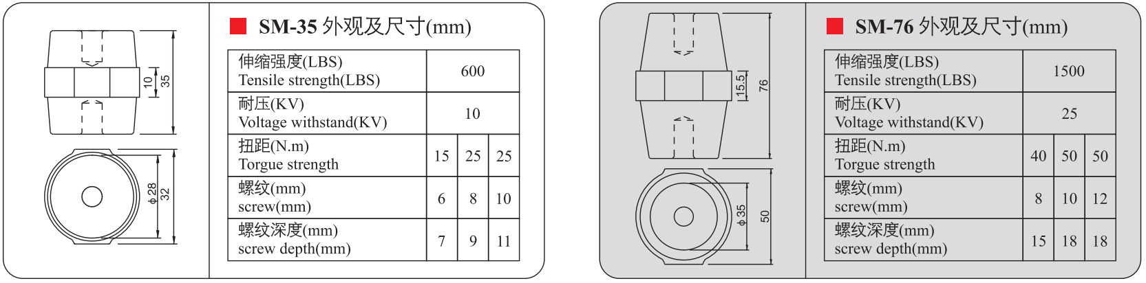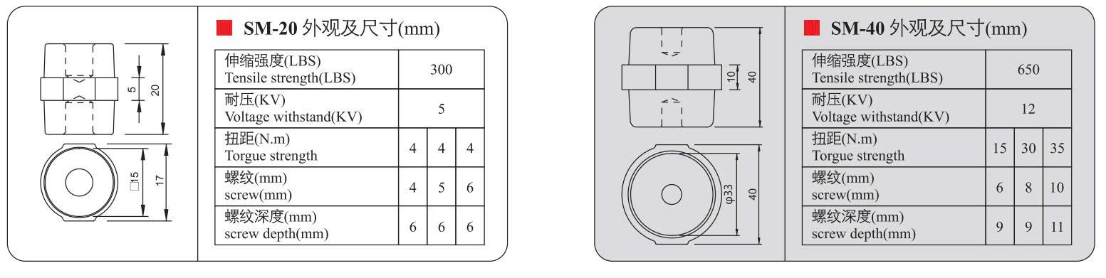 Sản phẩm gồm các mã: SM-20, SM-25S, SM-25, SM-30, SM-35, SM-40, SM-45, SM-51, SM-60, SM-76 – được phân loại theo kích thước và khả năng chịu điện áp khác nhau, phù hợp cho nhiều loại tủ điện công nghiệp.