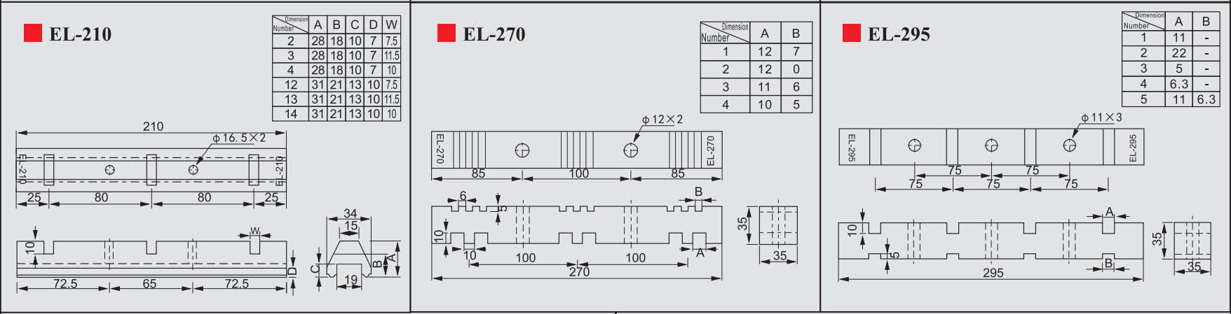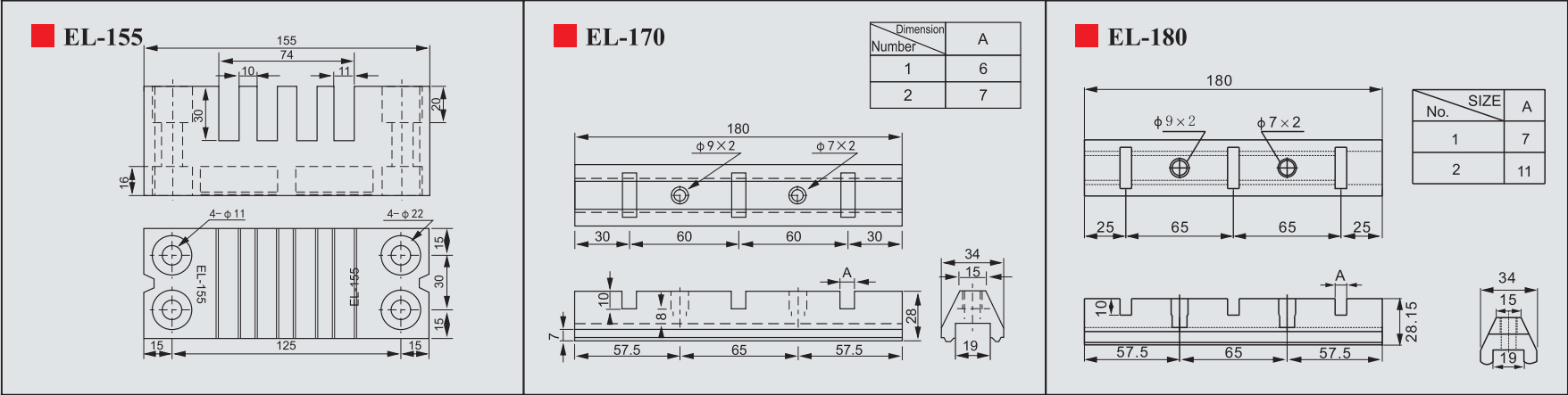 Sản phẩm gồm các mã: EL-130, EL-180, EL-210, EL-270, EL-295, EL-409, EL-500, EL-600, EL-800, được phân loại theo kích thước và khả năng chịu dòng/chịu lực, phù hợp cho nhiều loại tủ điện trung tâm và tủ điện công nghiệp.